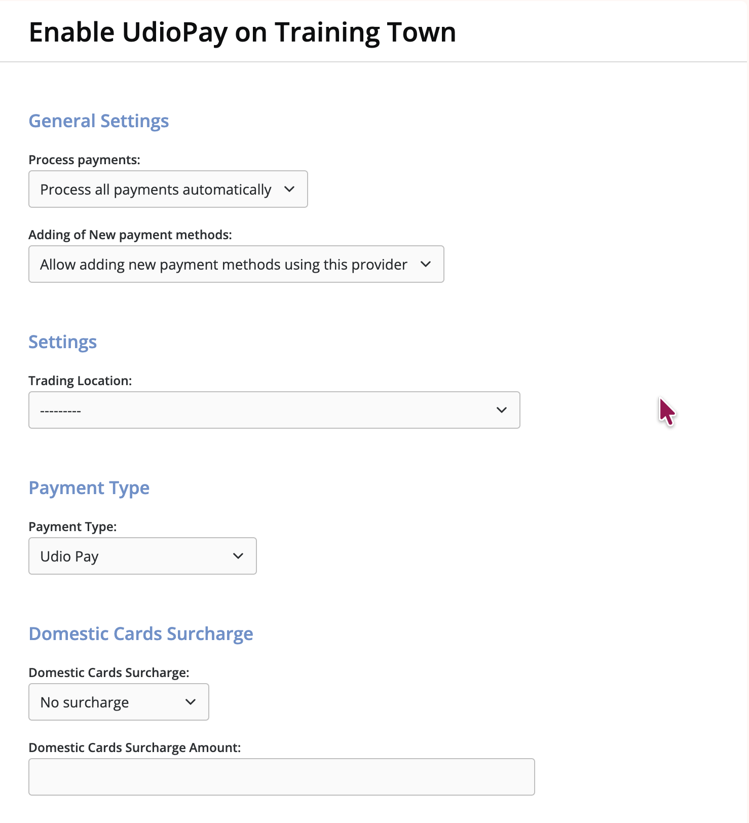 This guide explains how to set up Udio Pay for your organisation. Udio Pay is our integrated payment processing solution that allows you to accept payments from customers securely and efficiently.